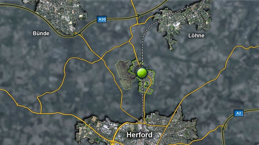 Das Baugrundstück ist in Hiddenhausen, Ortsteil Schweicheln Bermbeck gelegen. Zwischen Herford, Bünde und Löhne bietet diese Liegenschaft eine hervorragende überregionale Verkehrsanbindung an die A30 sowie die A2. Über die B61 erreicht man in wenigen Minuten Fahrzeit die Hansestadt Herford. Der fußläufig erreichbare Zugbahnhof sichert auch die schnelle Erreichbarkeit der Städte Herford, Bielefeld und Bad Oeynhausen mit dem Zug.