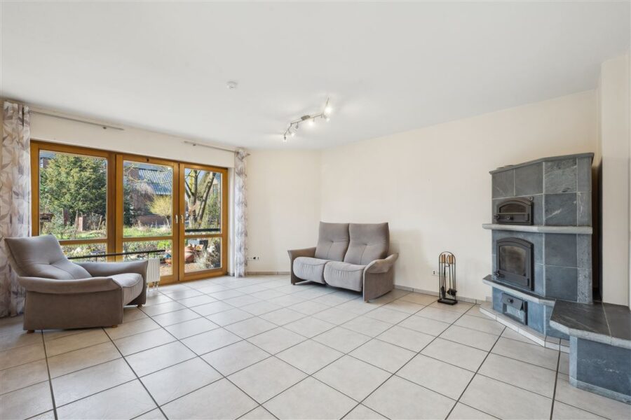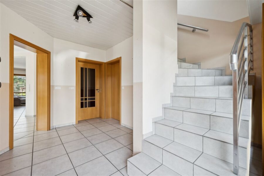 Das Einfamilienhaus wurde 1995 in massiver Bauweise mit einem zweischaligen Mauerwerk errichtet. Die Aussenschale besteht aus einem hochwertigen Klinker, die Zwischenschicht wurde gedämmt. Das ebenfalls gedämmte Satteldach ist teilausgebaut und verfügt über eine Tondachpfanne. Das Haupthaus ist voll unterkellert und wurde in der hochwertigsten Ausführung mit Stahlbeton erbaut. Im Kellergeschoss befindet sich eine Kelleraussentreppe in das Garagengebäude hinein. Auch dieses ist gleich dem Haupthaus massiv gebaut, verklinkert und mit mit einem Satteldach errichtet. Es verfügt über einen zusätzlichen Raum am Kopfende mit einem Zugang zum nicht ausgebauten Spitzboden sowie einem Gartenzugang. Beide Gebäude verfügen über Stahlbetondecken und Isolierverglasung. Die Böden im Haupthaus EG & KG sind gefliest, im DG gefliest und mit Teppich ausgebaut. Das Garagengebäude wurde im Erdgeschoss gepflastert.